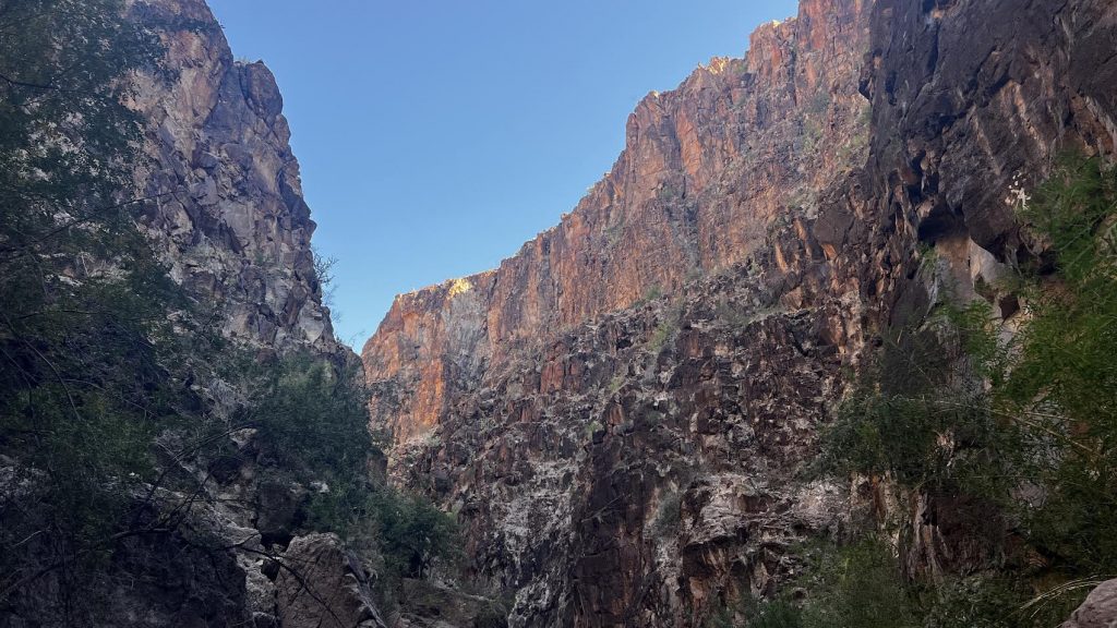 After exploring the state park, I got to check out Marufo Vega with Christy and Karen. One of our more challenging hikes, it is a 14-mile day hike that is hot, dry, exposed with no shade throughout the entirety of the trail. However, if you get far enough on the trail, you’ll get pretty stunning views of the Rio Grande River. We decided to put in about a 10-mile day and enjoyed a nice lunch in a tiny patch of shade under some boulders. Fortunately, it wasn’t too hot, and we were able to explore a good portion of the trail. When we were heading back, to keep our spirits high, I asked everyone to take guesses of when we would return to the trailhead, and I was right on the money at 4:17, just like a true ranger would be!!